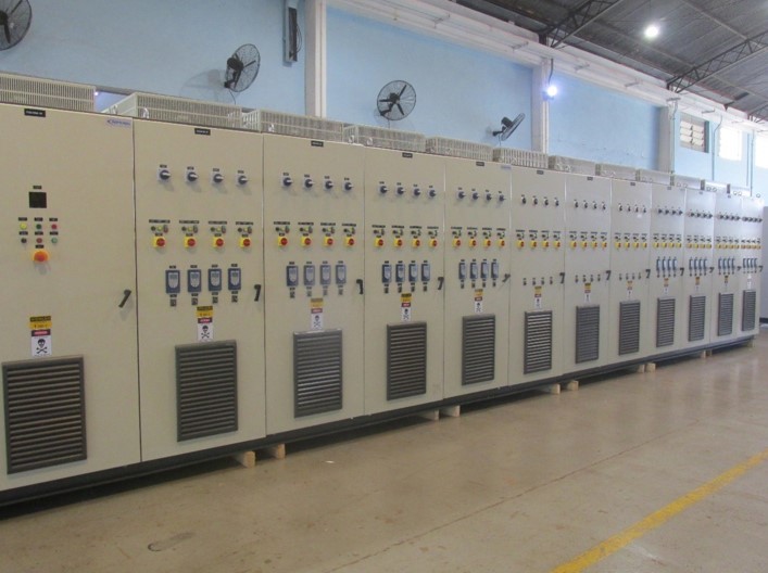 Foram fornecidos os painéis de controle de automação, painel de seccionamento e painéis de baixa tensão (CCM, QGBT, QDT, Quadro de fonte segura e banco de capacitores).