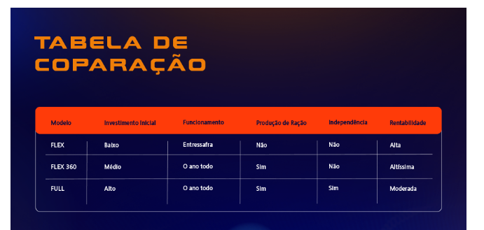 A escolha do modelo ideal depende de fatores como estrutura existente, orçamento disponível e metas de produção.