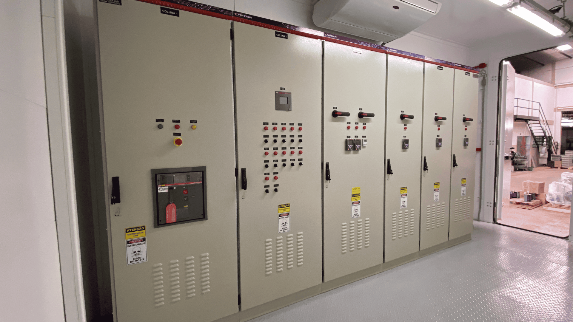 Com um design compacto, o eletrocentro reduz significativamente a área ocupada pelos sistemas elétricos e de automação. Isso resulta em: